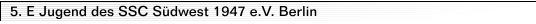 | | Grün-Weiß | Frohnau | Friedenau | Marienfelde | Hermsdorf | Lichtenrade | Schöneberg | Concordia | Internationale | SSC Südwest | | SSC Südwest 1947 V | 6:3 | 2:6 | 17.03/14:00 | 24.03/14:00 | 21.04/11:40 | 05.05/14:15 | 12.05/14:00 | 19.05/14:00 | 02.06/09:00 | | | VfB Hermsdorf V | | | | | | 4:4 | | | 5:3 | | | FC Internationale VI | | | 12:1 | | 3:5 | | | | | | | Concordia Wilhelmsruh | 5:2 | ausg. | | | | | | | | | | FC Schöneberg V | | | | 1:0 | | 1:4 | | | | | | FC Stern Marienfelde VI | | | 3:3 | | | | 0:1 | | | | | Lichtenrader BC 25 VI | | | | | 4:4 | | 4:1 | | | | | BSV Grün-Weiß Neukölln V | | | | | | | | 2:5 | | 3:6 | | Friedenauer TSC VI | | | | 3:3 | | | | | 1:12 | | | Frohnauer SC V | | | | | | | | ausg. | | 6:2 |